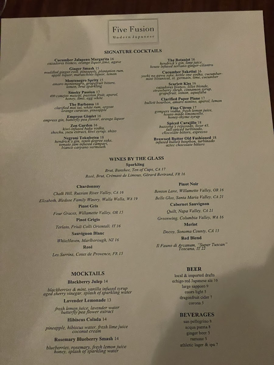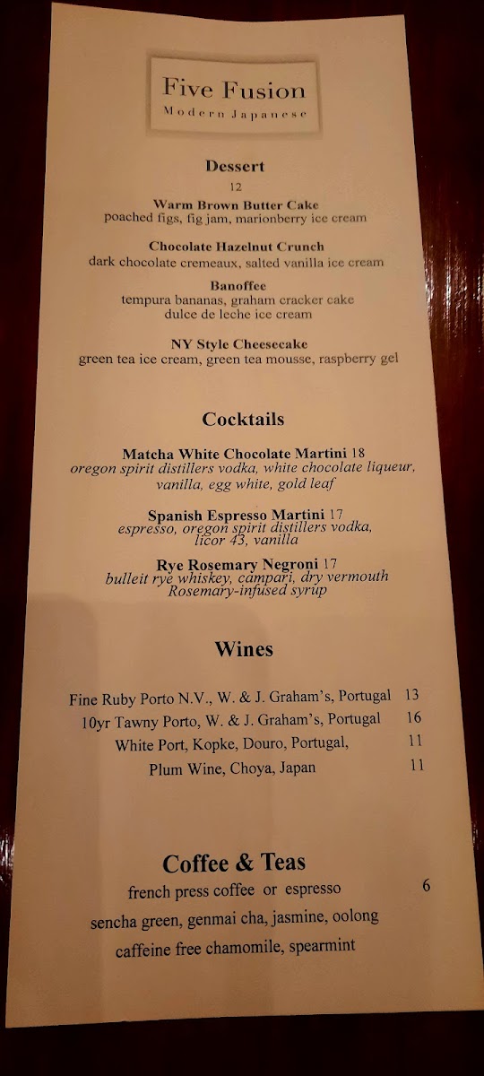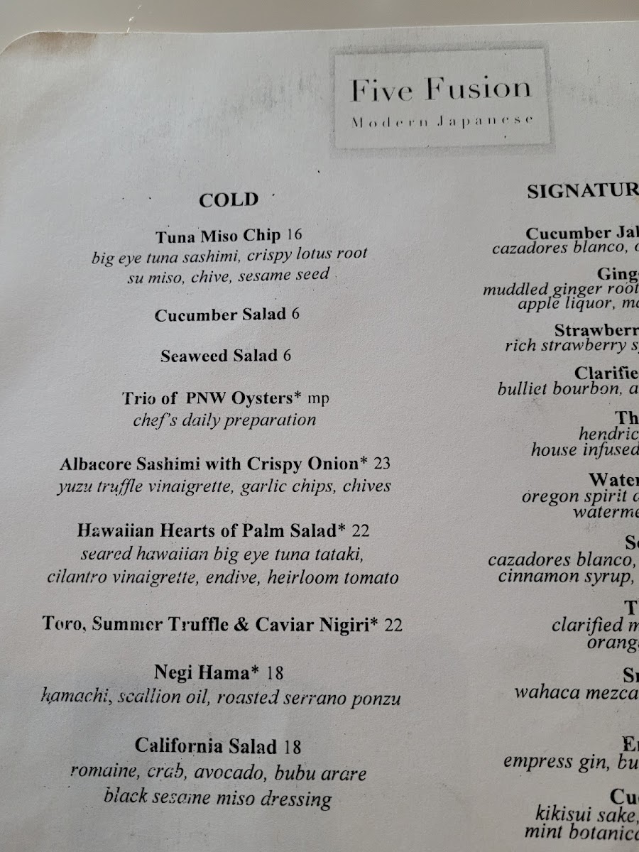 Welcome to Five Fusion & Sushi Bar, a delightful culinary gem nestled in downtown Bend, Oregon. The restaurant's vibrant atmosphere is complemented by unique decor, including a captivating water feature that enhances your dining experience. Each visit promises an array of expertly crafted dishes, with customers raving about the sensational beef spare ribs and the fresh sushi, including an assortment of specialty rolls and bluefin sashimi.